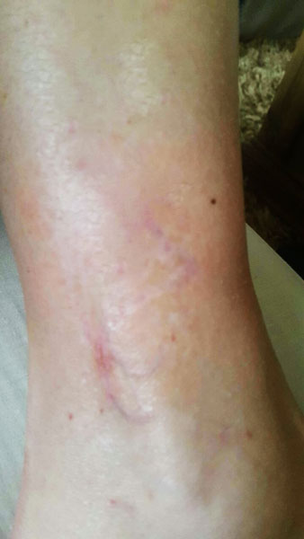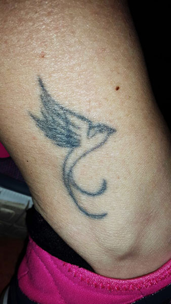 energy at a tattoo which shatters the pigments into tiny particles which is then evacuated from the body through normal immune response. As the ink particles are removed, the tattoo begins to fade.